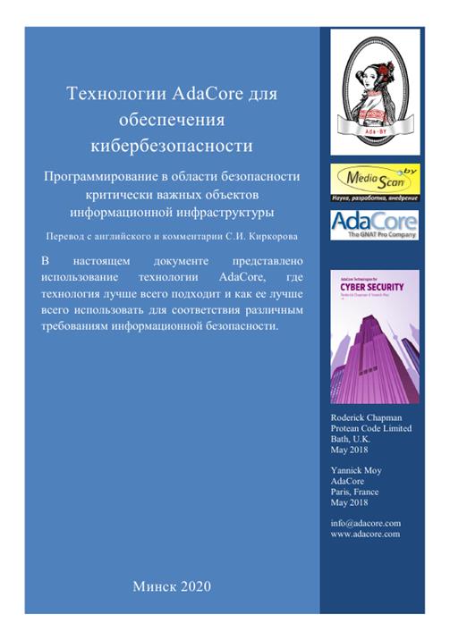2020-05-11 Доступен перевод издания AdaCore Technologies for Cyber Security Version 1.0 May 2018 Технологии AdaCore для обеспечения кибербезопасности Минск 2020 Перевод и редактирование выполнил Киркоров Сергей Иванович